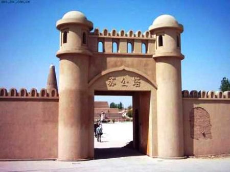 Entre los destinos interesantes de Turpan está el minarete Emin Ta que está justo a unos 2 kilómetros rumbo este del pueblo. Este minarete se construyó en 1778 por ordenes del gobernante local musulmán, Emin Hoja. También se lo conoce con el nombre de Torre Sugong y tiene un estilo islámico de construcción muy simple.