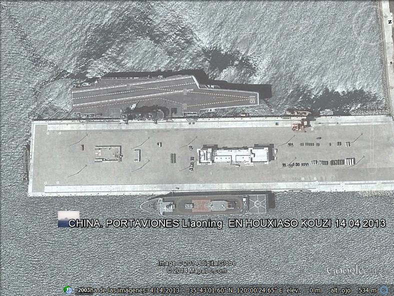Bueno, el caso es que me encontré con el nuevo portaaviones chino Liaoning anclado a puerto y, además, con un J-11 con las alas plegadas en cubierta. Por el color del mismo, creo que es el prototipo que se usó para probar la capacidades de este avión y su portador.çç