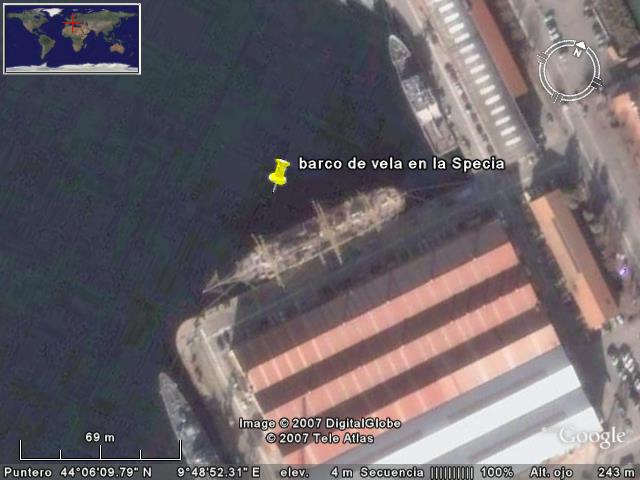 Creo que este barco es el Amerigo Vespucci, el buque escuela de la marina de guerra italiana. Lo he encontrado en la base naval de la Specia, por eso creo que es. Y si no estoy equivocado es el unico buque escuela que tiene la marina italiana