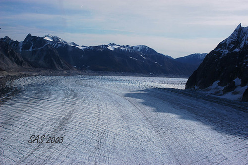 En la toma de GE se ve el "camino de hielo " en bajada que termina en un glaciar.