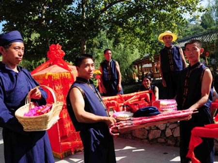 La boda dirigida por el tío materno, y con la participación de un cantante casi profesional, también está repleta de cantos, la novia se lleva a casa del marido, realizando algunas ceremonias para librarse de los demonios, y sus familiares cantan la tristeza, los del marido la bienvenida.