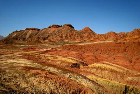 Zhangye posee la típica región de tierras áridas más extensa, el área de Danxia, localizada fundamentalmente en los distritos de Linze y Sunan y rodeada por coloridas colinas que permiten ver como baja y sube la tierra, formando ondas. Rocas de estratos de diferentes colores colocadas en un agradable desorden forman una impresionante y magnífica vista.
