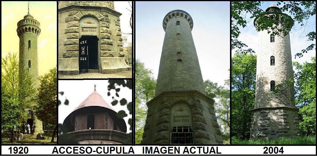 Y por debajo, un medallón del busto de Bismarck en relieve de bronce coronado con hojas de roble, donado por Kaufmann C. P. (Su fijación fue posterior, en junio de 1903) Historia de la torre