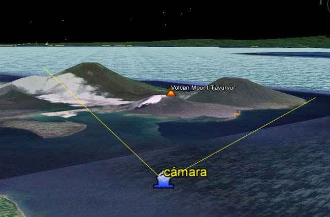 En función de esta pregunta de Moyito me picó la curiosidad de posicionar la cámara de vídeo que tomó la erupción.