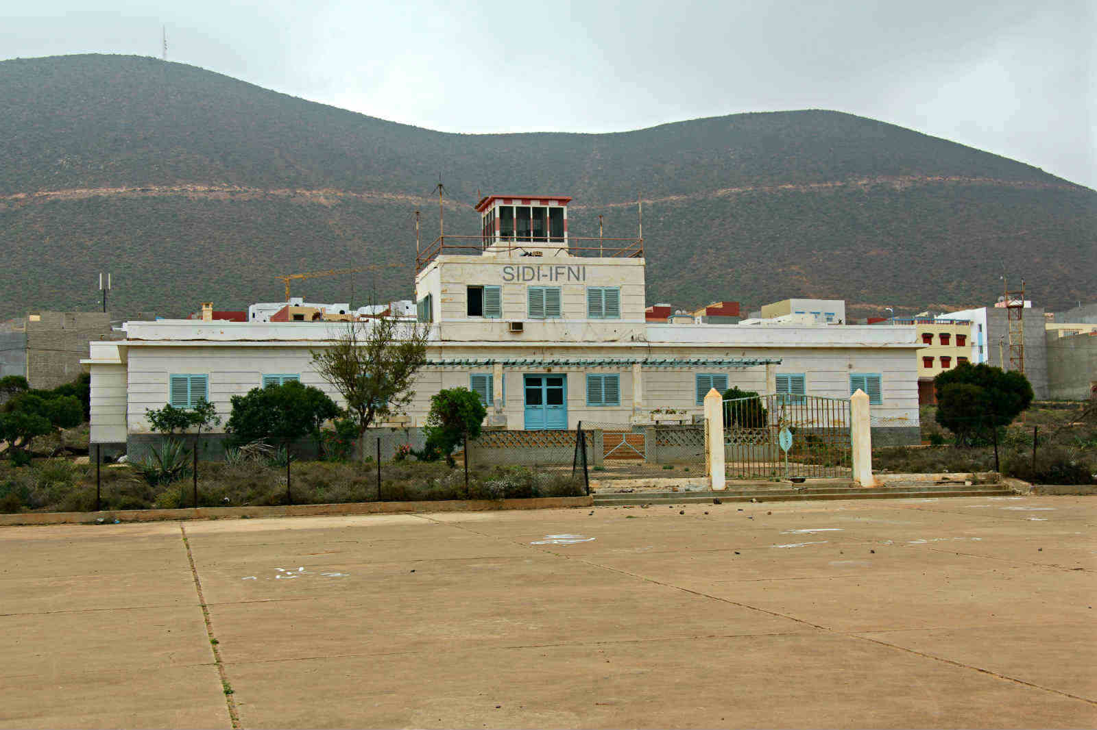 El aeropuerto de Sidi Ifni, con torre de control y terminal, pista de rodadura y de despegue/aterrizaje cuyos restos se pueden observar aún hoy día, en la época española el aeropuerto era de uso conjunto militar y civil, actualmente, solo sobrevive el Edificio de la Terminal y Torre de Control, no visitable y reconvertido en la estación de méteo local, además de estar militarizado, por supuesto; las pistas están en un estado deplorable siendo difícil incluso seguir su traza y, por supuesto, el aeropuerto no está en servicio.
