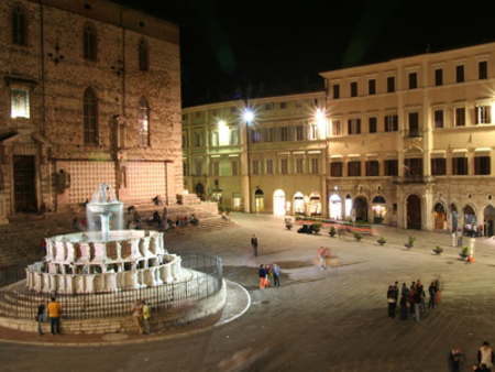 La Fontana Maggiore o fuente principal, fue construido para celebrar la construcción del acueducto que traía agua a Perugia de los manantiales de Paciano, una montaña a unos cinco kilómetros del centro de la ciudad. El acueducto se completó en 1278. La fuente fue construida y decorada por Nicola Pisano (1220-c.1280) y su hijo Giovanni (1245-1320) entre 1277 y 1278.
