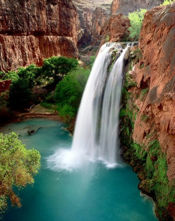 En la actualidad, la catarata conocida como Havasu Falls, con una altura de 37 metros, sigue manteniendo un gran salto de agua que cae sobre la piscina natural.