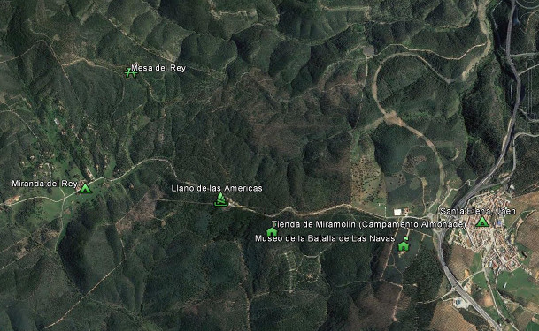 Subo una actualización del KMZ hecho por mi, con algunos de los lugares mas emblemáticos de la Batalla, como La Mesa del rey, El llano de las Americas (que en 1212 no se llamaba así, por motivos evidentes), o el cerro de los olivos o de las viñas, donde puso Miramolín su tienda.