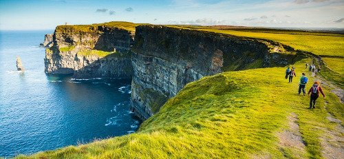 Con más de 200 metros de altura y una extensión de casi 10 millas,'The Cliffs' es el último punto de la costa oeste de Irlanda en County Clare, atrayendo cada día a miles de visitantes a contemplar y contemplar el arte natural de los acantilados, con el aire y el mar como pintores. El viento que te sopla mientras caminas por las cumbres de los acantilados es tan vital como el agua del mar salpica hacia atrás cuando ves los acantilados desde el nivel del suelo, y es la perspectiva del mar la que yo recomendaría como un buen comienzo.