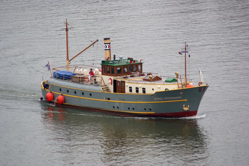 El George Stephenson es un tributo a la construcción naval de los años 20,30,40 y 50, es un barco de vapor y es una combinación de un casco nuevo con partes y elementos de barcos de vapor del pasado.