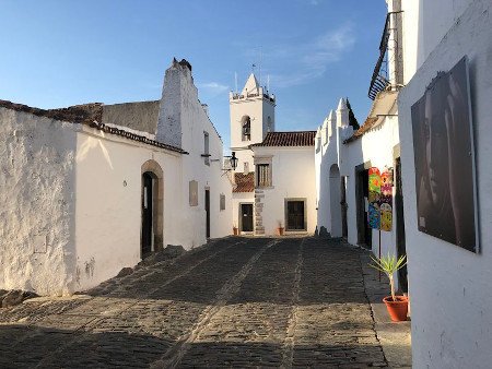 Sus calles empedradas están rodeadas de una muralla medieval y son perfectas para disfrutar de la magia de este lugar, en ellas encontrarás iglesias, casas de un blanco inmaculado adornadas con flores, antiguos palacetes, tiendas de artesanía, numerosos miradores desde donde disfrutar del atardecer o ver las increíbles vistas al Valle del Río Guadiana y los campos cercanos y hasta un imponente castillo del siglo XIII.