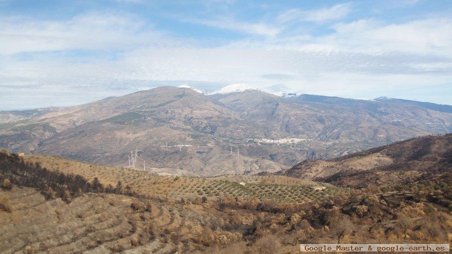 - Al Norte Sierra Nevada, coronada por el Veleta y, a sus faldas, la Alpujarra y el Valle de Lecrín.