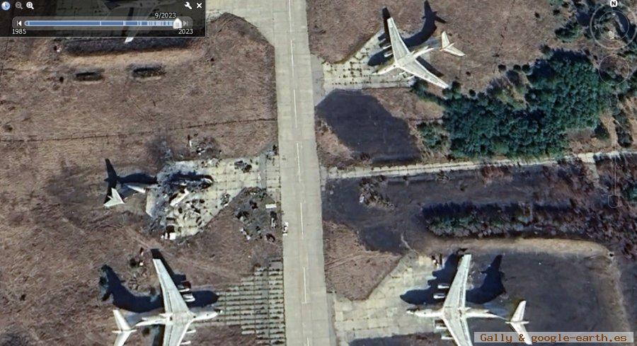 Pero acercando aún mas la imagen a lo que esta marcado con el Icono de Google Maps se ven los Aviones Destruidos.