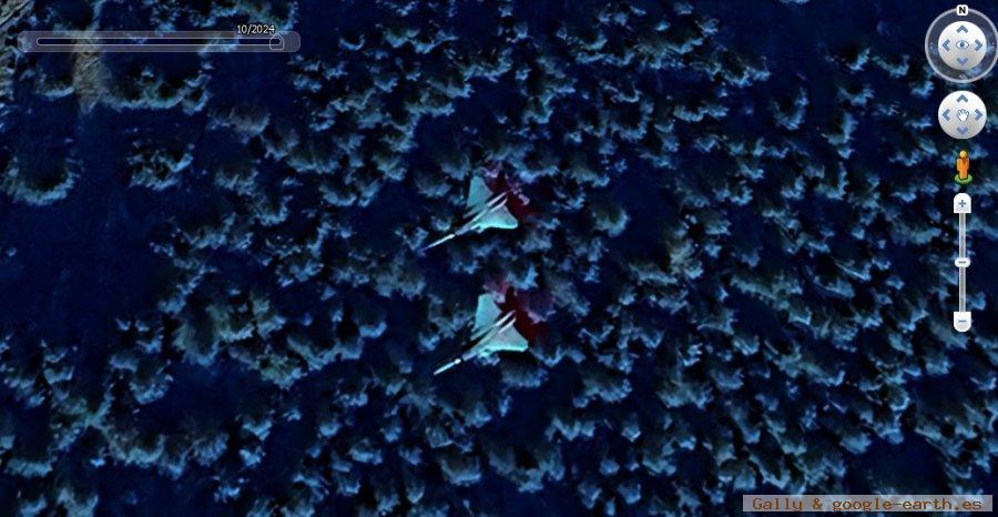 Luego acercando mas la imagen a lo que esta marcado con el Icono de Google Maps se ven los 2 Aviones F-15E Strike Eagle volando