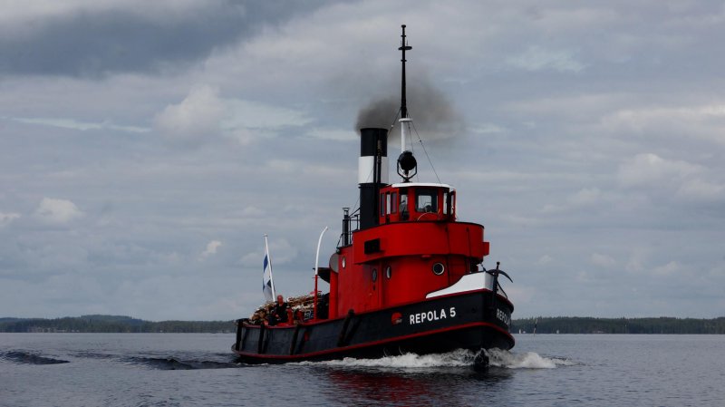 El hermoso remolcador continúa navegando en su puerto base de Savonlinna.