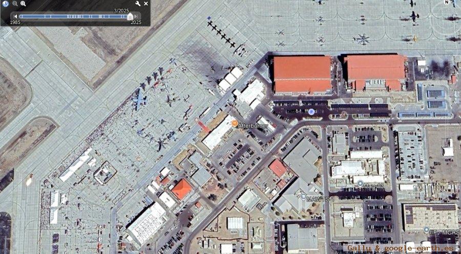 Si acercamos mas la imagen al Icono de Google Maps aquí ya se ve bien la muestra estática de aviones, helicópteros y drones de la Yuma Airshow, Estados Unidos.