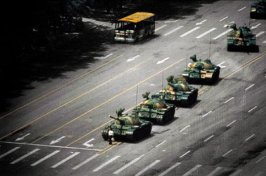 La foto fue tomada por Jeff Widener, y se transmitió esa misma noche siendo titular en cientos de periódicos, noticieros y revistas de todo el mundo.