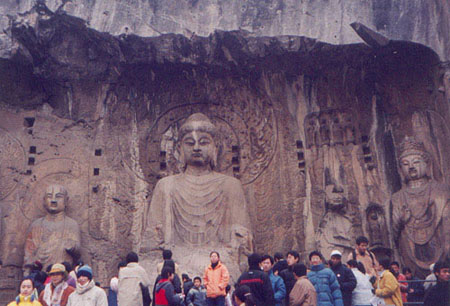 En cualquier caso, el recinto continuó creciendo durante las dinastías Sui (581-618) y, sobre todo, Tang (618-907). Entre las cuevas más espectaculares, cabe reseñar la de Fengxian y la de los 10.000 Budas (construidas en el año 680 por orden de la emperatriz Wu Zetian, y en cuyas pareces aparecen gravados infinidad de pequeños Budas), la de Binyang y la del Loto, llamada así por la decoración floral del techo. Sin embargo, lo más llamativo es un imponente Buda de 17 m de altura (en la foto), del que se dice que podría ser una representación de la propia Wu Zetian. viajesypropuestas.blogspot.com/ ...china.html berclo.net/page97/97es-china-9.html www.destinosasiaticos.com/ ...OYANG.html