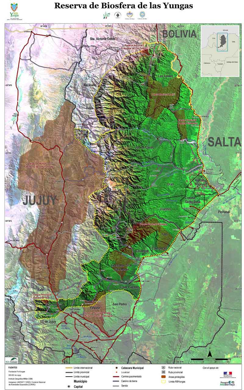 Pertenece a las eco-regiones selva de Las Yungas o selvas de montaña del noroeste argentino y puna, cuyo clima es cálido húmedo a subhúmedo, con lluvias estivales de entre 900 y 1300 mm. Esta eco-región se encuentra integrada a las sierras subandinas, en altitudes que varían entre 400 y 3000 m.