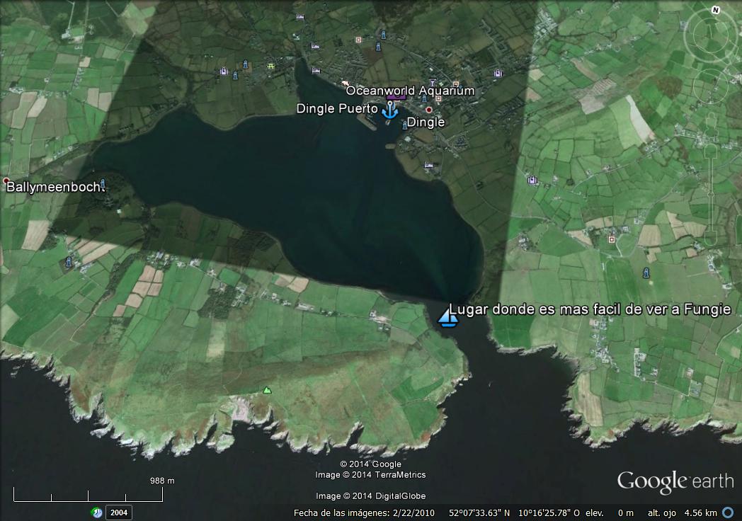 Fungie, el delfín mas famoso de Irlanda, se puede ver en la bahía de Dingle cualquier día del año, desde 1983, siendo hoy un delfín anciano.