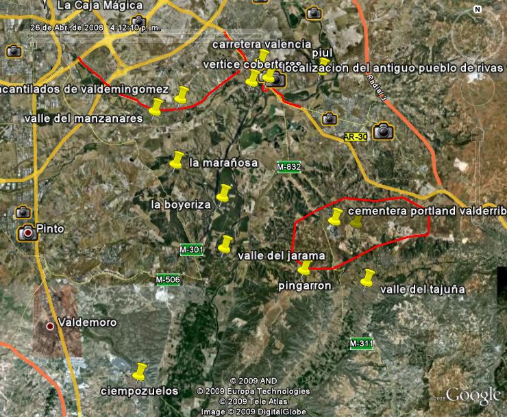 Pongo un KMZ con unas chinchetas en rojo de bunkeres republicanos de la batalla del Jarama. Cool