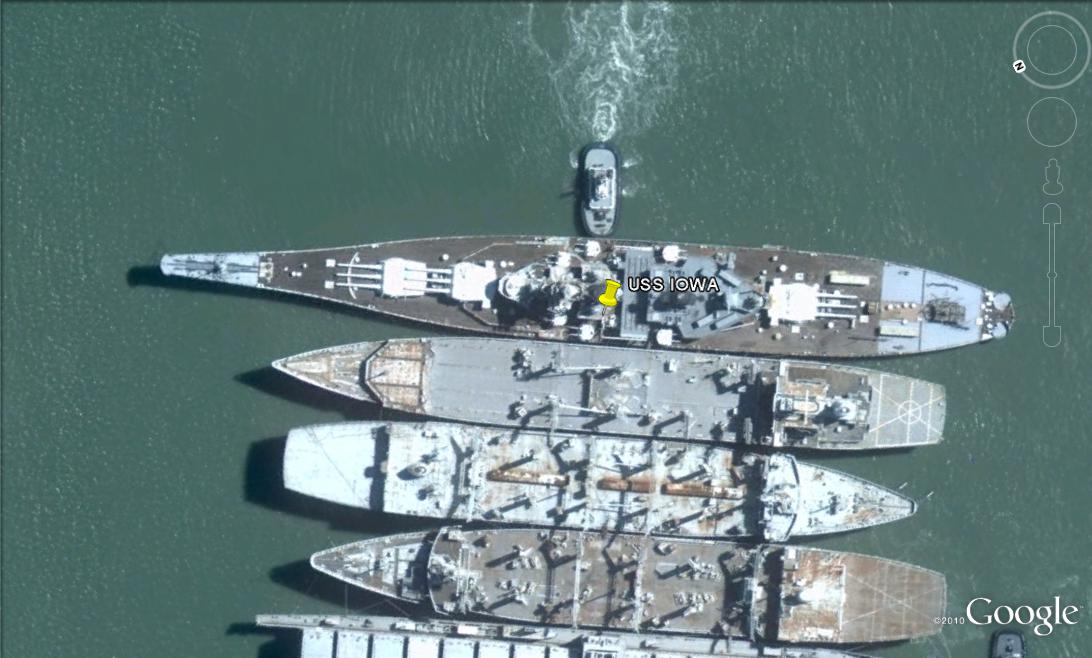 Es el USA- USS-IOWA, un gran acorazado que participo en varias guerras incluida la II Guerra Mundial, Corea y el Golfo: www.panoramio.com/photo/15359971