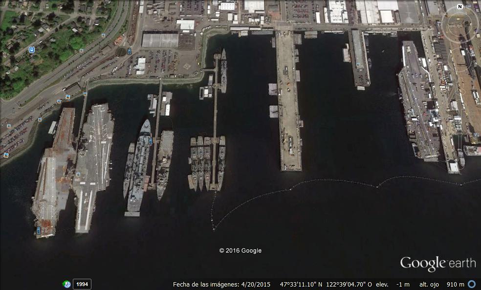 La Base Naval de Kitsap, no solo tiene submarinos nucleares, también es uno de los pocos lugares del mundo donde podemos encontrar 3 portaaviones juntos.