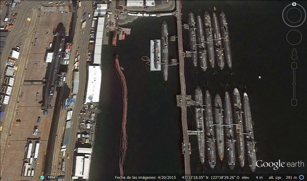 Es difícil encontrar 14 submarinos, en su mayoría nucleares clase Ohio, Seawolf y Virgina, en un mismo muelle. Estamos en la base naval Kitsap - USA
