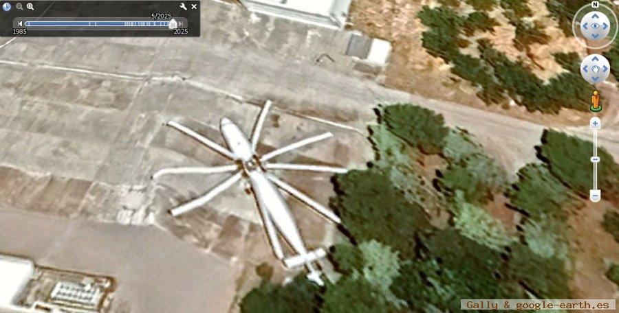 Luego acercando la imagen a el recuadro rojo, aquí se ve un MI-26 sin aspas en una especie de Museo.
