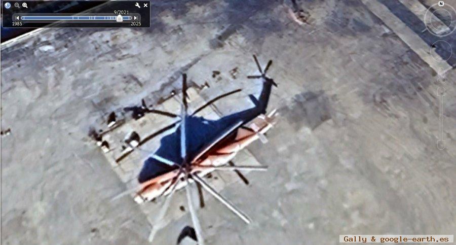 Pero si acercamos mas la imagen a el Icono de Google Maps, aquí se ve el MI-26T estacionado. Chocado