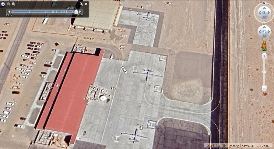 Acercando la imagen se ve completo el Umm Al Melh Border Guards Airport y lo que esta marcado con el Icono de Google Maps es donde esta el Dron MQ-9 Reaper.