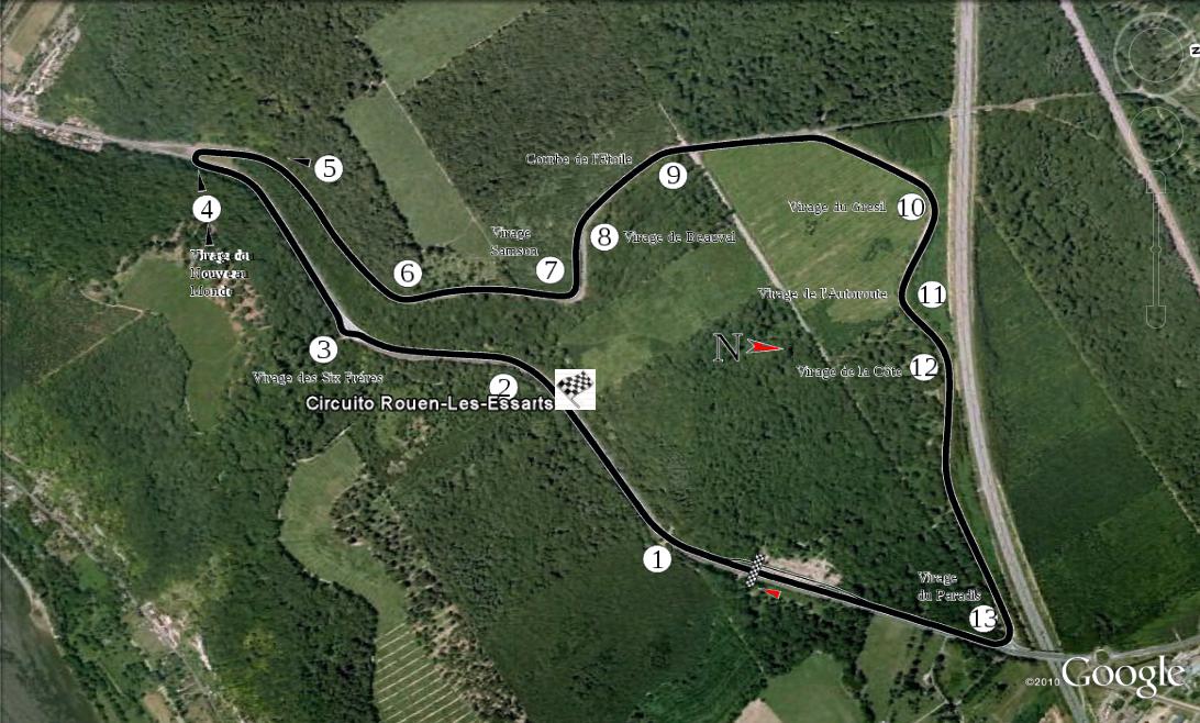 Rouen-Les-Essarts era un trazado de 5100 metros de extensión entre 1950 y 1954. En 1955 se lo cambió por un recorrido de 6542 metros, y finalmente la construcción de la autopista A13 forzó a modificar nuevamente el circuito, ahora de 5543 metros de extensión. Rouen-Les-Essarts se abandonó en 1993 por problemas de seguridad ante accidentes y costos de mantenimiento.