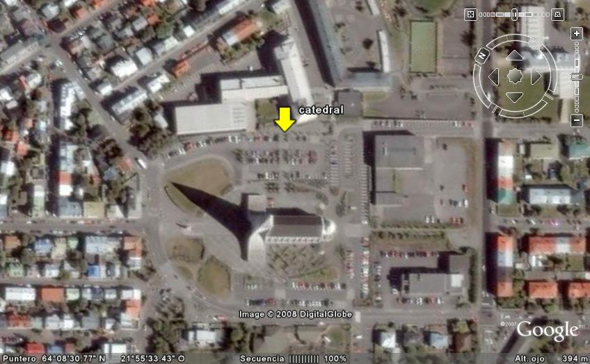 Curiosamente, en el suelo, delante de la catedral, está dibujada, esquemáticamente, su portada. Se ve bien en GE, casi apetece ponerla en el foro de mensajes al espacio...