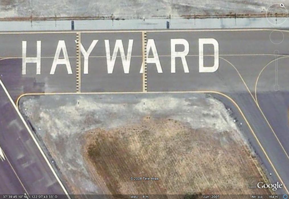 Lugares con dibujos o mensajes sobre techos de edificios o pintados en montañas. Carteles visibles desde el cielo.