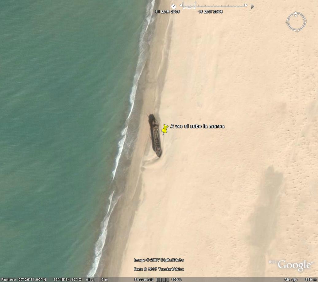 Localización y coordenadas de barcos hundidos, encallados, naufragios en todos los mares, vistos con Google Earth o Google Maps.