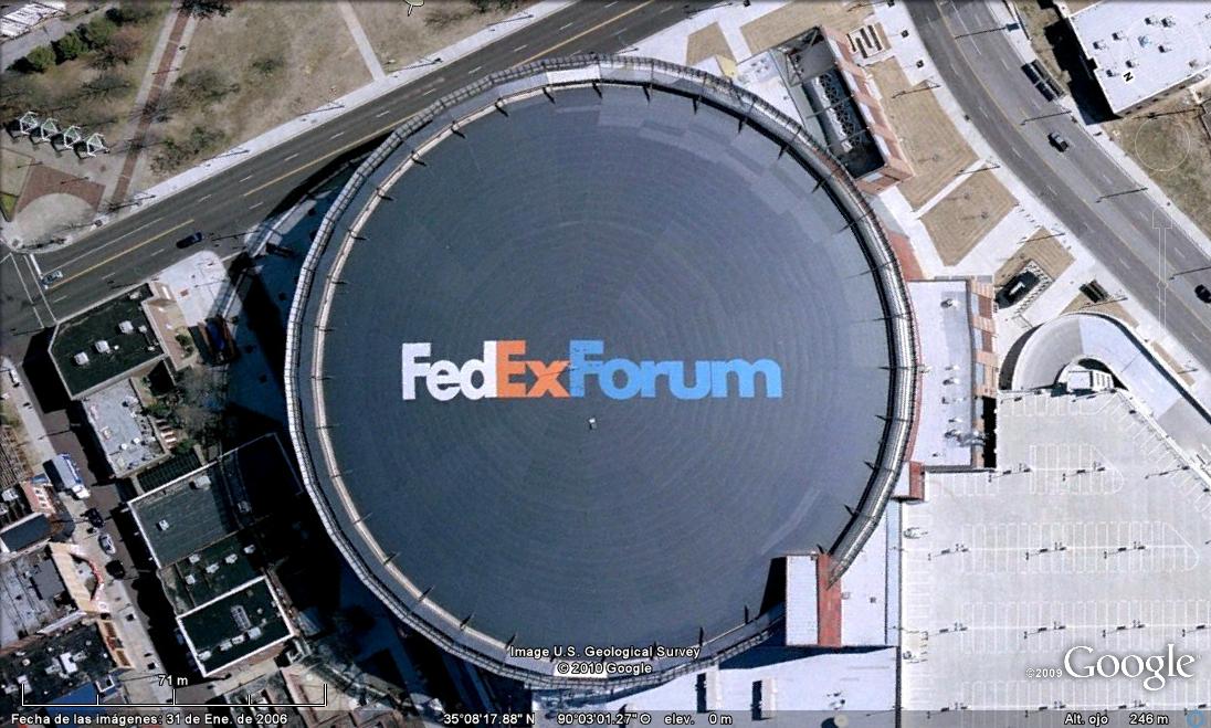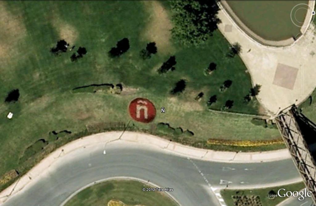 Lugares con dibujos o mensajes sobre techos de edificios o pintados en montañas. Carteles visibles desde el cielo.
