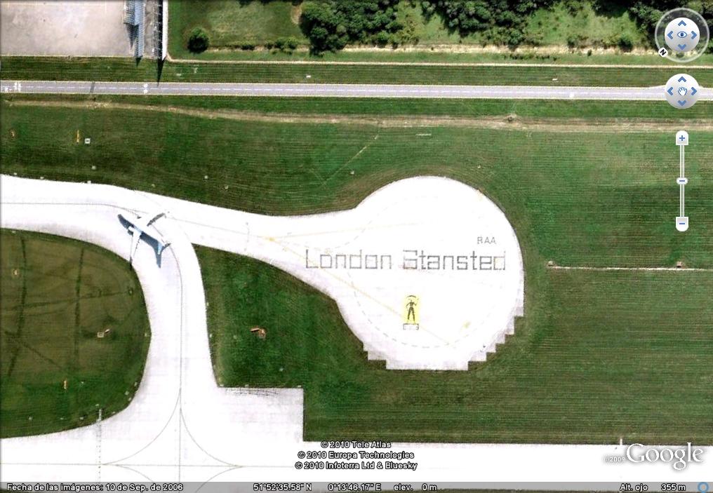 Lugares con dibujos o mensajes sobre techos de edificios o pintados en montañas. Carteles visibles desde el cielo.