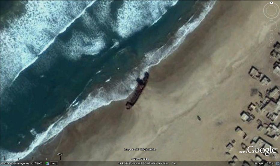 Localización y coordenadas de barcos hundidos, encallados, naufragios en todos los mares, vistos con Google Earth o Google Maps.