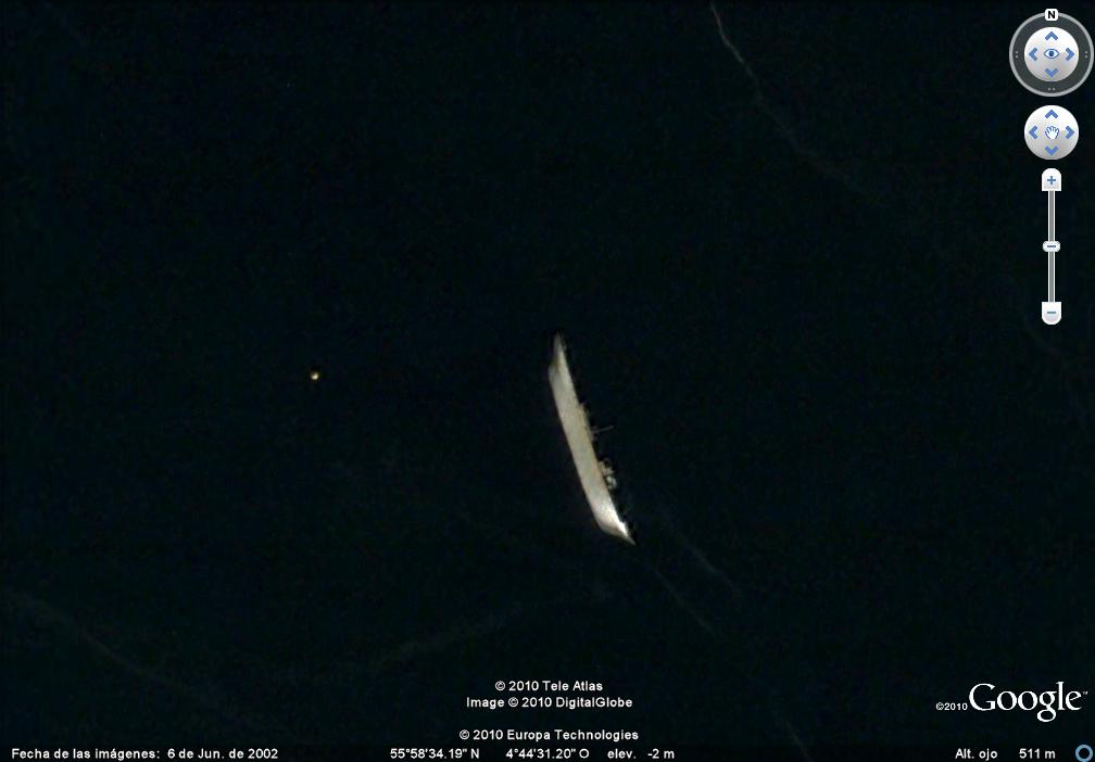 Localización y coordenadas de barcos hundidos, encallados, naufragios en todos los mares, vistos con Google Earth o Google Maps.