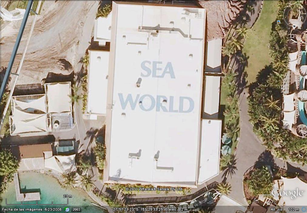 Lugares con dibujos o mensajes sobre techos de edificios o pintados en montañas. Carteles visibles desde el cielo.