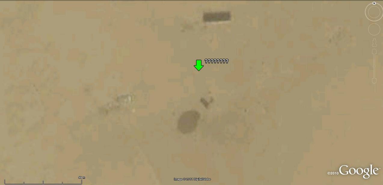Van dos fotos del desierto de Irak, desgraciadamente de muy mala resolución Una de zona ampliada para facilitar la búsqueda y otra con el lugar exacto.