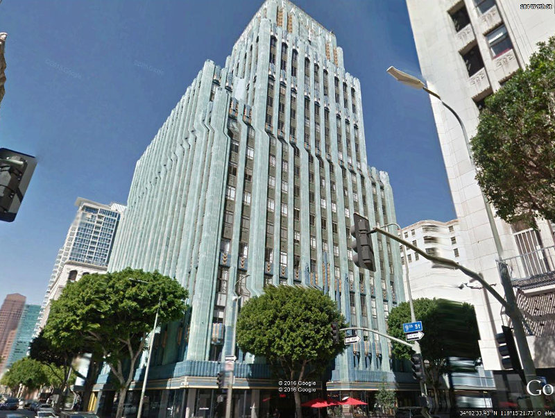 El edifico de color turquesa está situado en 849 S. Broadway en el centro de la ciudad de Los Angeles y es considerado un ejemplo destacado del estilo Art Deco en la ciudad californiana.