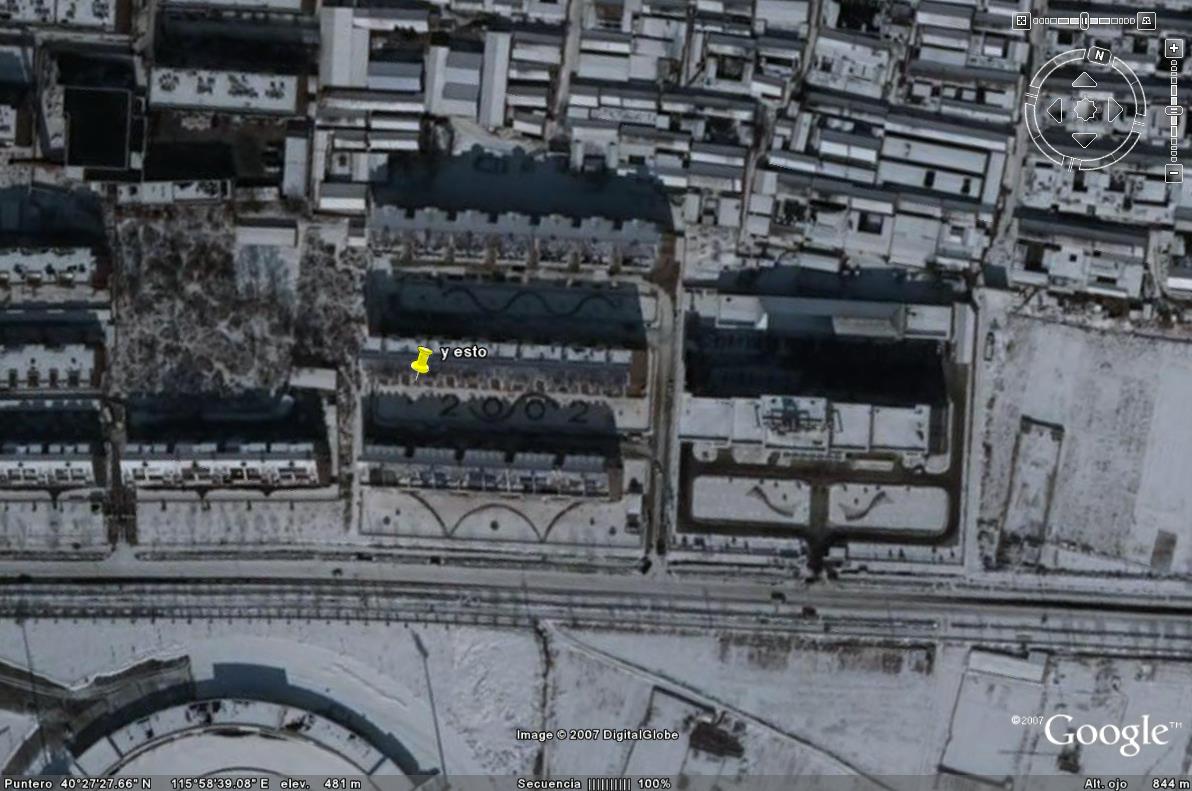Lugares con dibujos o mensajes sobre techos de edificios o pintados en montañas. Carteles visibles desde el cielo.