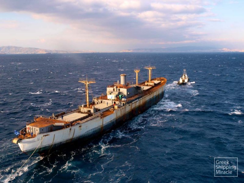 El 6 de diciembre de 2008, salió de Norfolk, Virginia, siendo remolcada hacia el puerto de Pireo en enero de 2009.