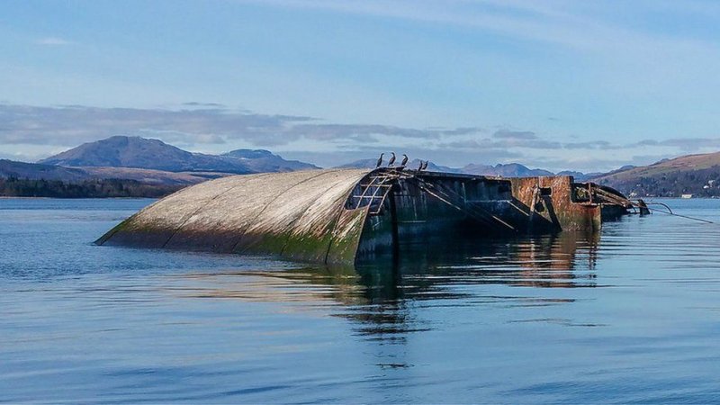 Este barco no esta hundido pero fue encallado y abandonado en 1957 y aun sobrevive, testimonio de su buena construcción.