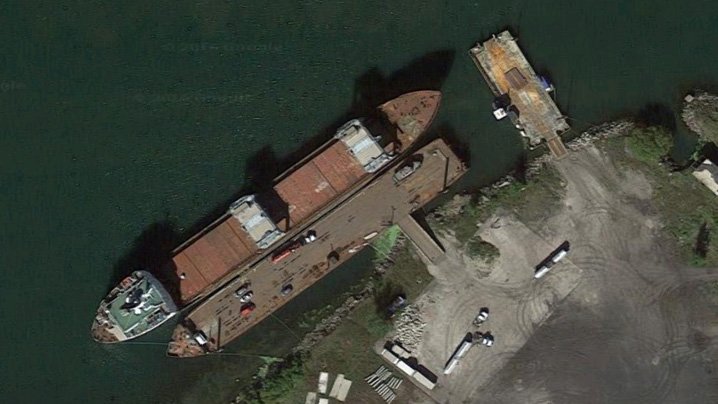 Este barco de carga fue tomado bajo la protección de los servicios fronterizos. Sin embargo, los residentes locales lograron pintar graffiti a bordo, organizar muchas sesiones de fotos cerca del barco y organizar excursiones.