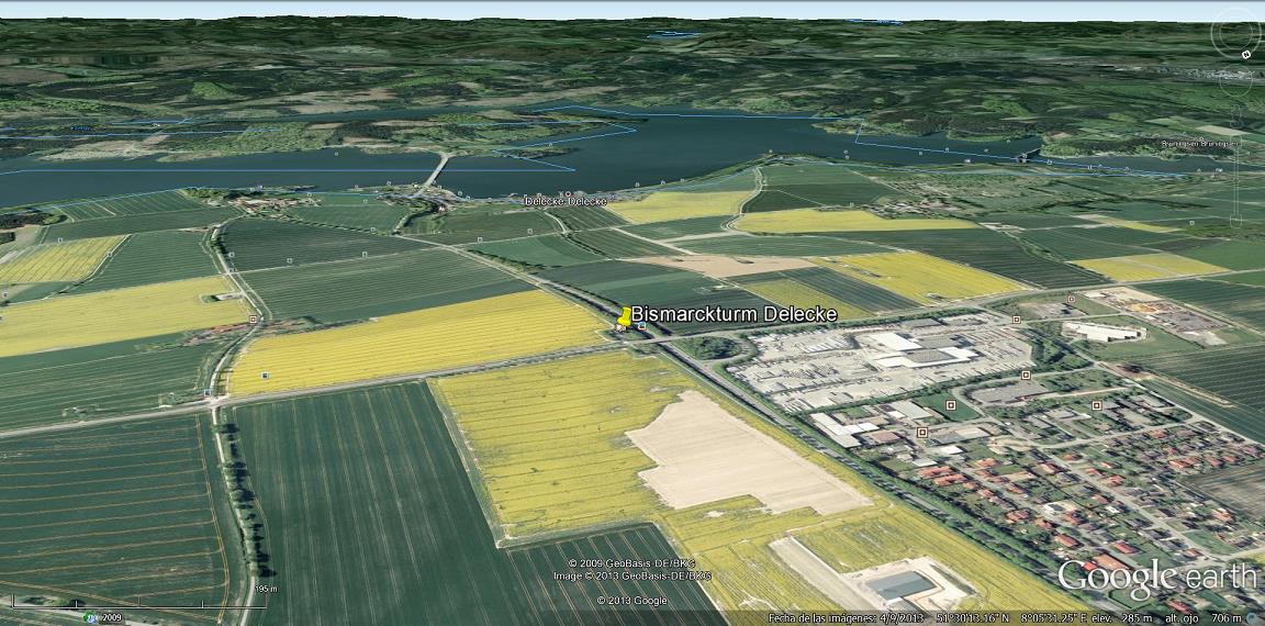 En el Monte Kahlen, a 76m sobre el nivel del mar, en Mülheim / Ruhr construyeron una torre Bismarck que resultó la única en la que se había previsto desde un principio lograr el efecto de encender su importante iluminación con un "cuerpo de energía eléctrica".