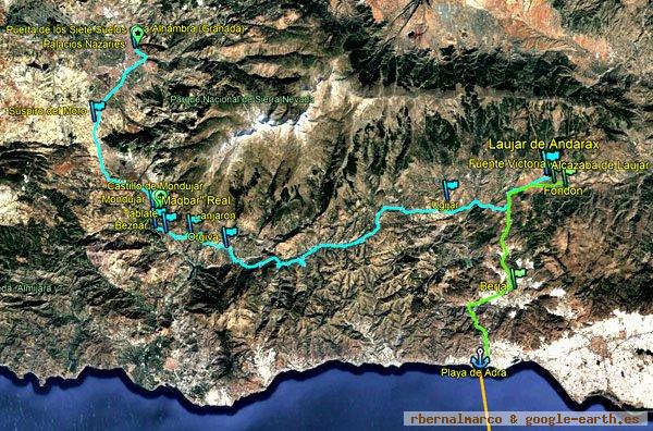 La ruta, es un tema que además de rcordarnos la historia del hito representativo de la desaparición definitiva del dominio musulman en la península, con el exilio de su último rey, Boabdil el Chico (Muhammad XII) del reino nazarí de Granada, nos muestra un recorrido por la Alpujarra, granadina y almeriense, lugares extraordinarios dignos de conocer.