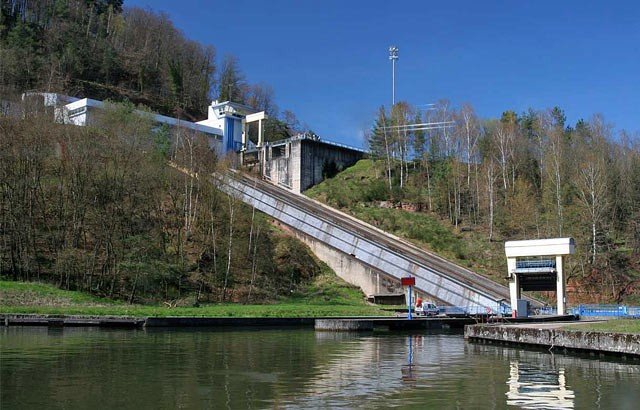 Con una diferencia de altura de 73,15 metros entre los dos cauces, es el segundo ascensor de barcos más alto del mundo.