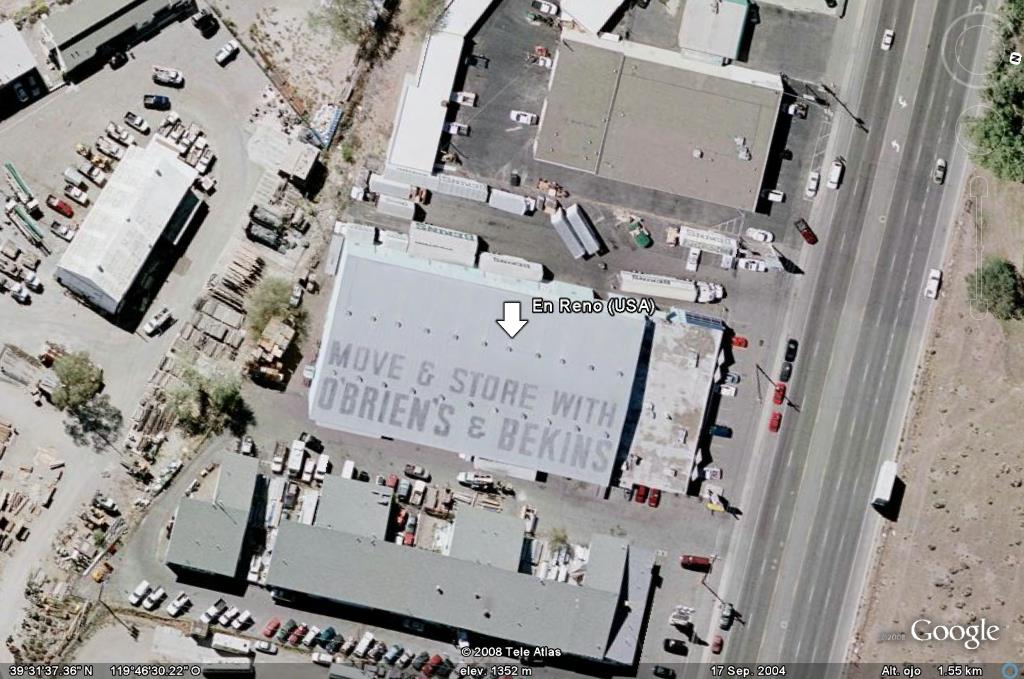 Lugares con dibujos o mensajes sobre techos de edificios o pintados en montañas. Carteles visibles desde el cielo.